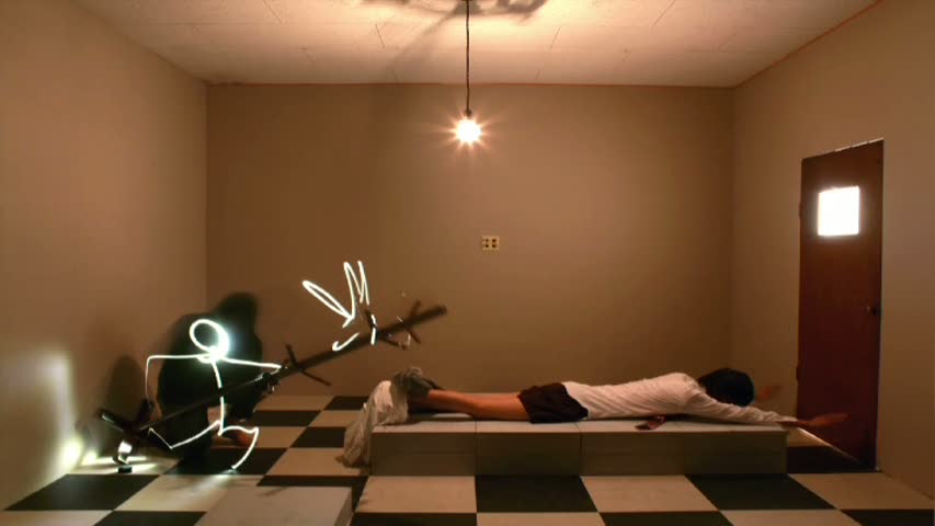 My biggest problem as an artist was finding a form of artistic expression that would have the same effect as music, but in the realm of painting - the impact of sharing the same time space and physical space among a large number of people. That just happened to turn out to be video, and in terms of specific technique within that framework, animation, but for me animation has never been anything but an extension of my painting work. My films started out abstract, but after a few films they began to evolve in a more concrete direction, until eventually there were even what you'd call dialogue and stories starting to appear in the films, and eventually even characters. So on the surface, my films began to look more and more like what you'd typically call 'animation films', but it feels really off and wrong when I hear people call me an animation artist. (Kurosaka interviewed by Kiroki Kawa, 2006, Source: Anipages)